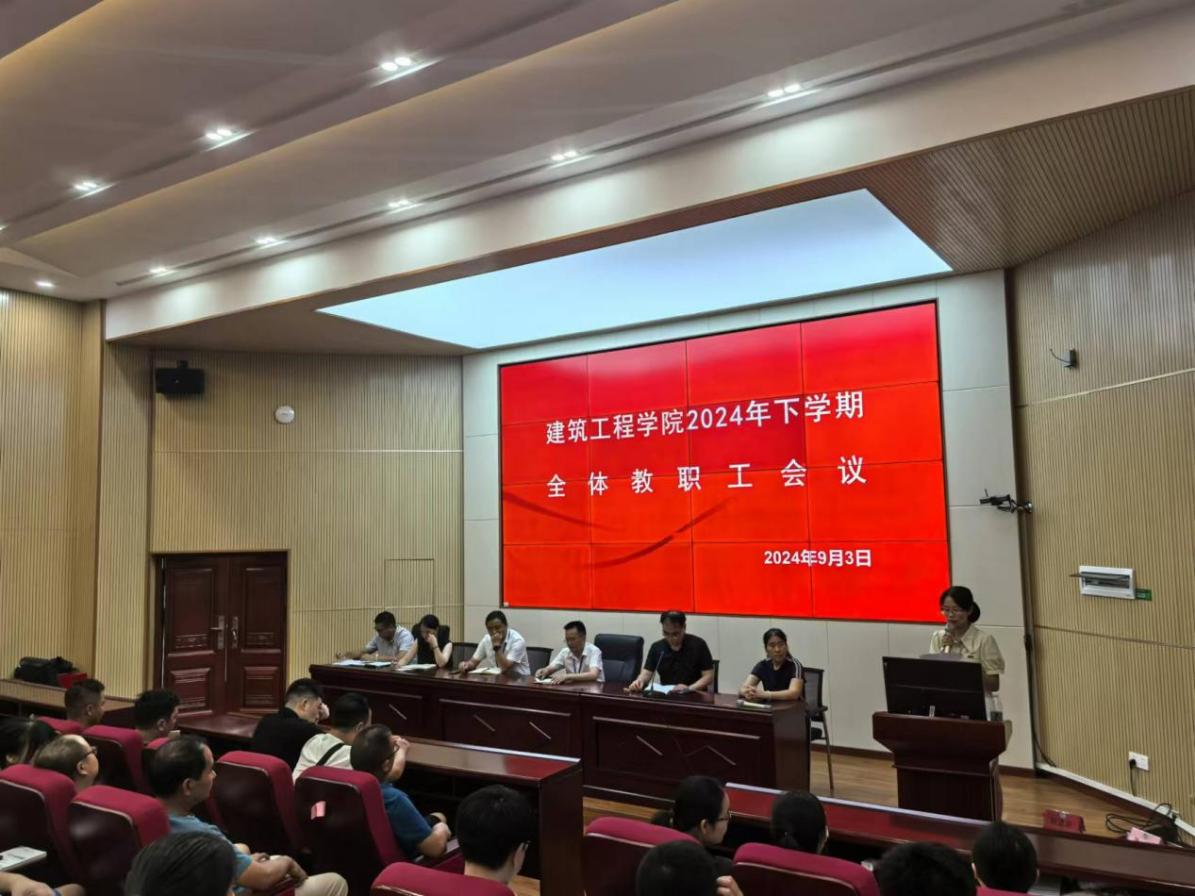 9月4日下午,建筑工程学院新学期第一次全体教职工大会在学术报告厅举行,校党委委员、纪委书记罗文忠、纪委副书记、纪检监察室主任唐晨光、学院领导班子成员及全体教职工参加。会议由建筑工程学院党支部书记张晔主持。