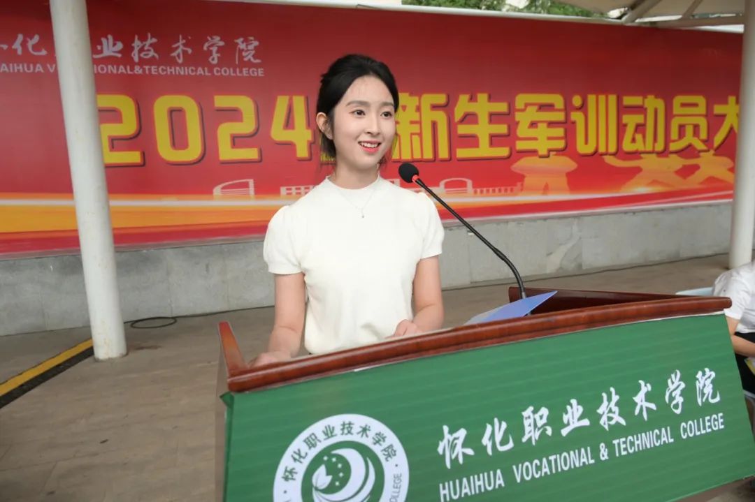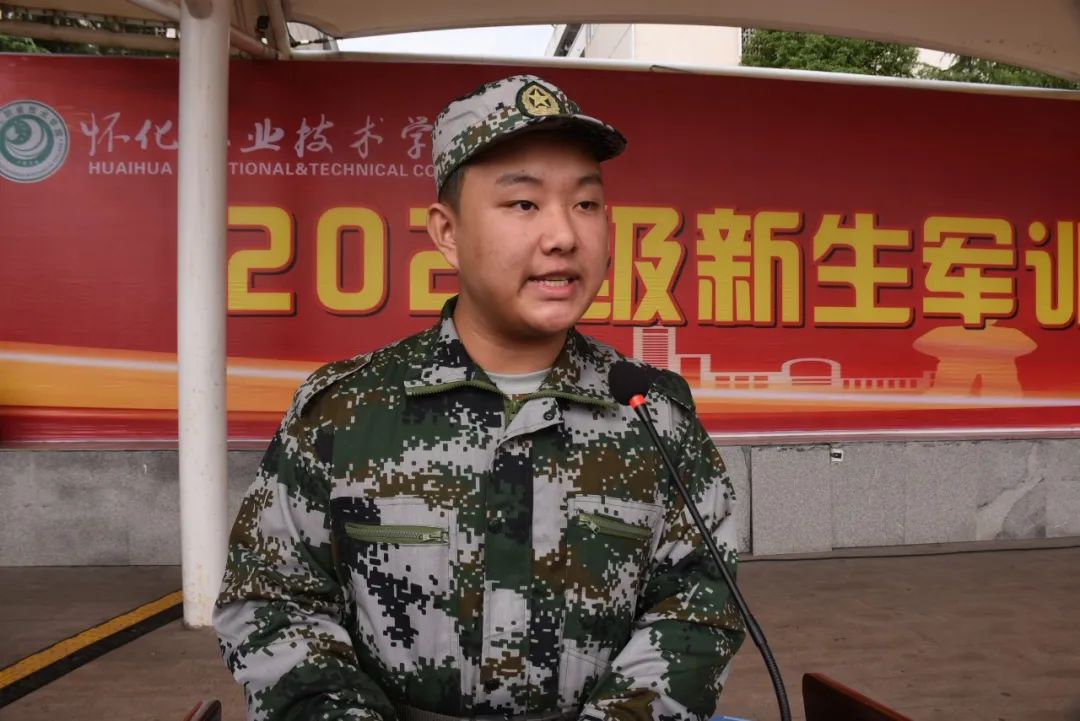 学生代表徐红向学弟学妹分享了三点体会:要怀揣梦想启新程,广交挚友共前行,践行使命绽光芒。新生代表赵文正代表2024级新生承诺:努力学习,积极进取,时刻铭记“崇德、尚能、精业、有为”的校训,在军训中展现风采和毅力!