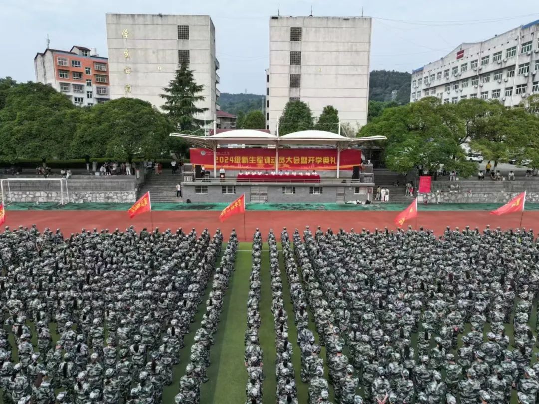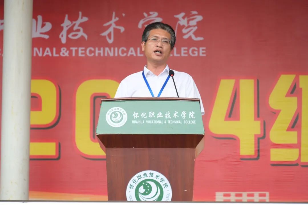 9月18日上午,我校举行2024级新生开学典礼暨军训动员大会。96834部队副参谋长吴翼材到会指导,党委书记胡扬帆、党委副书记、校长刘学文,校领导张云龙、罗向东、廖冬云、罗文忠、周碧波、向敏、肖宪龙、钟峰、李亚玲、刘鑫,学校相关部门负责人、二级学院负责人、2024级全体新生及新生班级辅导员(班主任)、承训教官参加典礼。廖冬云主持大会。