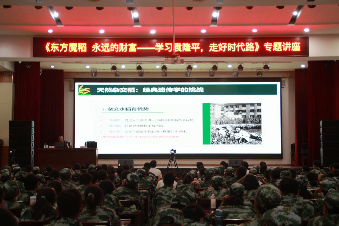 精彩的讲座,让现场聆听的师生们系统地了解了杂交水稻在怀、在怀化职业技术学院的研发过程,深切感受到了党的伟大,感受到了社会主义大协作、中国特色社会主义的道路自信和举国体制搞研究的制度自信,领略到了袁隆平院士当之无愧的杂交水稻研发总设计师的大师风范,真切感悟到了袁隆平院士潜心钻研、不畏艰辛的科研精神,感受到了他的信念坚定、矢志不渝、勇于创新、朴实无华的高贵品质,以奉献祖国和人民为目标,以祖国和人民需要为己任,一辈子躬耕田野,脚踏实地地将科技论文写在祖国的大地上的崇高风范,深刻体悟到了知识、汗水、灵感、机遇的成功法宝。现场不断响起自觉而热烈的掌声。