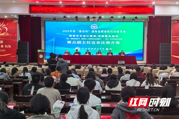 红网时刻新闻3月21日怀化讯(记者彭渊林 通讯员 曾琳 肖亦然)3月20日下午,2025年度“楚怡杯”湖南省职业院校技能竞赛“导游服务”“视觉艺术设计”两个赛项在怀化职业技术学院开赛。来自全省60支代表队的217名选手同台竞技,共展职教风采。怀化职业技术学院党委副书记张云龙出席。