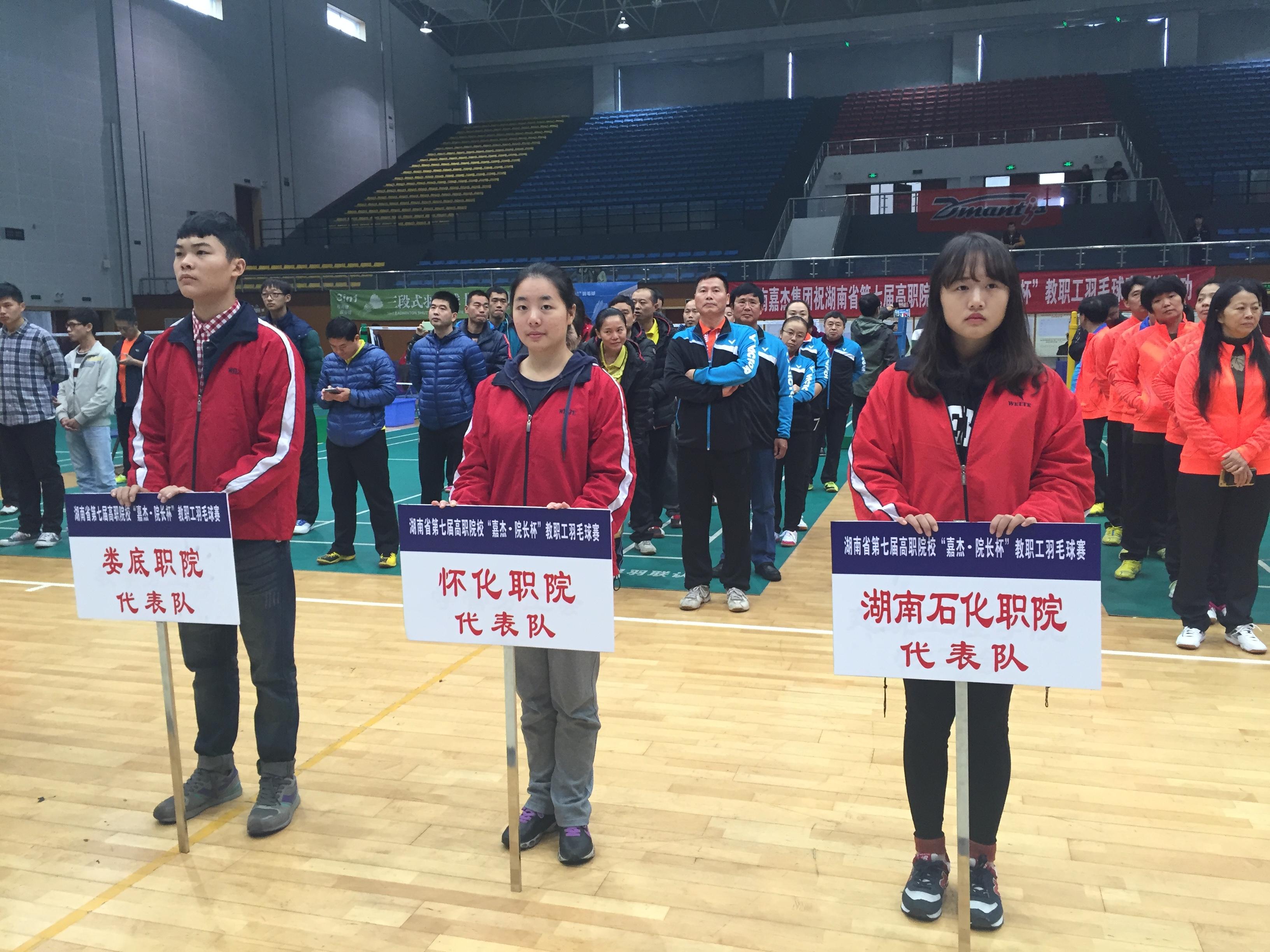 近日,湖南省第七届高职院校“嘉杰﹒院长杯”教职工羽毛球赛在湖南交通职业技术学院隆重举行,我院派出的代表队在本次比赛上再创佳绩,党委书记陈一翔和院长王聪田获得院领导组男双季军,副院长谢培荣获得男单B组第六名、纪检副书记高文获得女单B组第四名的好成绩。