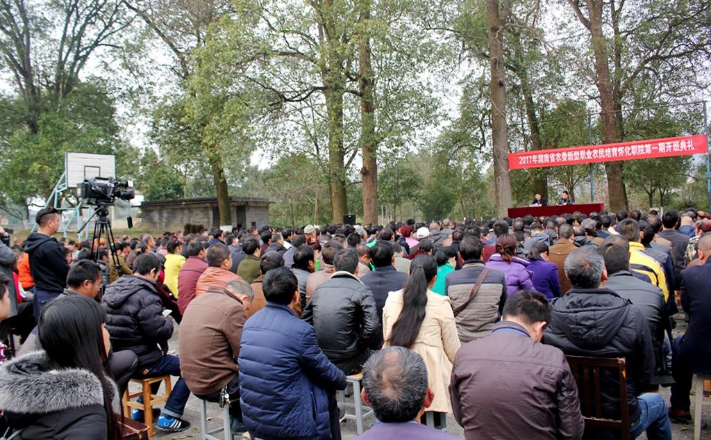 2月20日上午8点30分,2017年湖南省新型农民培训怀化职院第一期开班仪式在安江农校篮球场隆重举行。本次培训共有500余人参加培训,他们分别来自麻阳、通道、溆浦、辰溪、鹤城、中方六县区,培训内容将从农业技术、农产品电子商务和创业理念三个方面展开,为期15天。