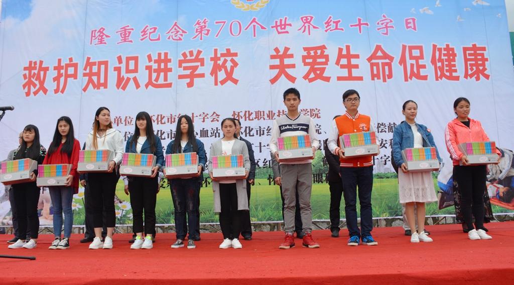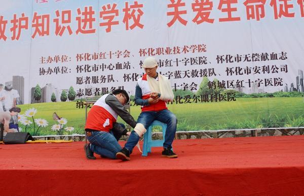 5月8日上午10点,“救护知识进学校、关爱生命促健康”大型主题活动在学院校门广场隆重举行。怀化市政府副秘书长杨世木、市红十字会常务副会长欧家好、我院党委书记胡佳武、院长王聪田等领导出席活动,来自商贸管理系和机械与汽车工程系的近千名学生参加了本次活动。活动由市红十字会和我院联合主办,市中心血站、市红十字医院等十家单位协办。