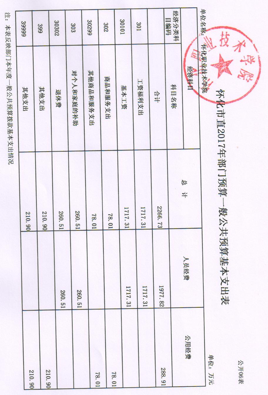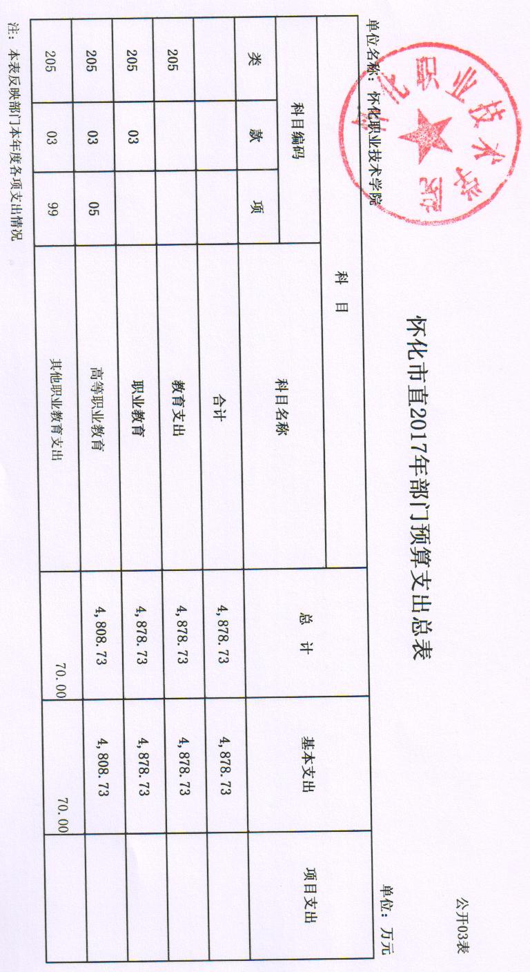 怀化职业技术学院2017年部门预算公开说明