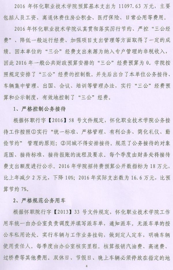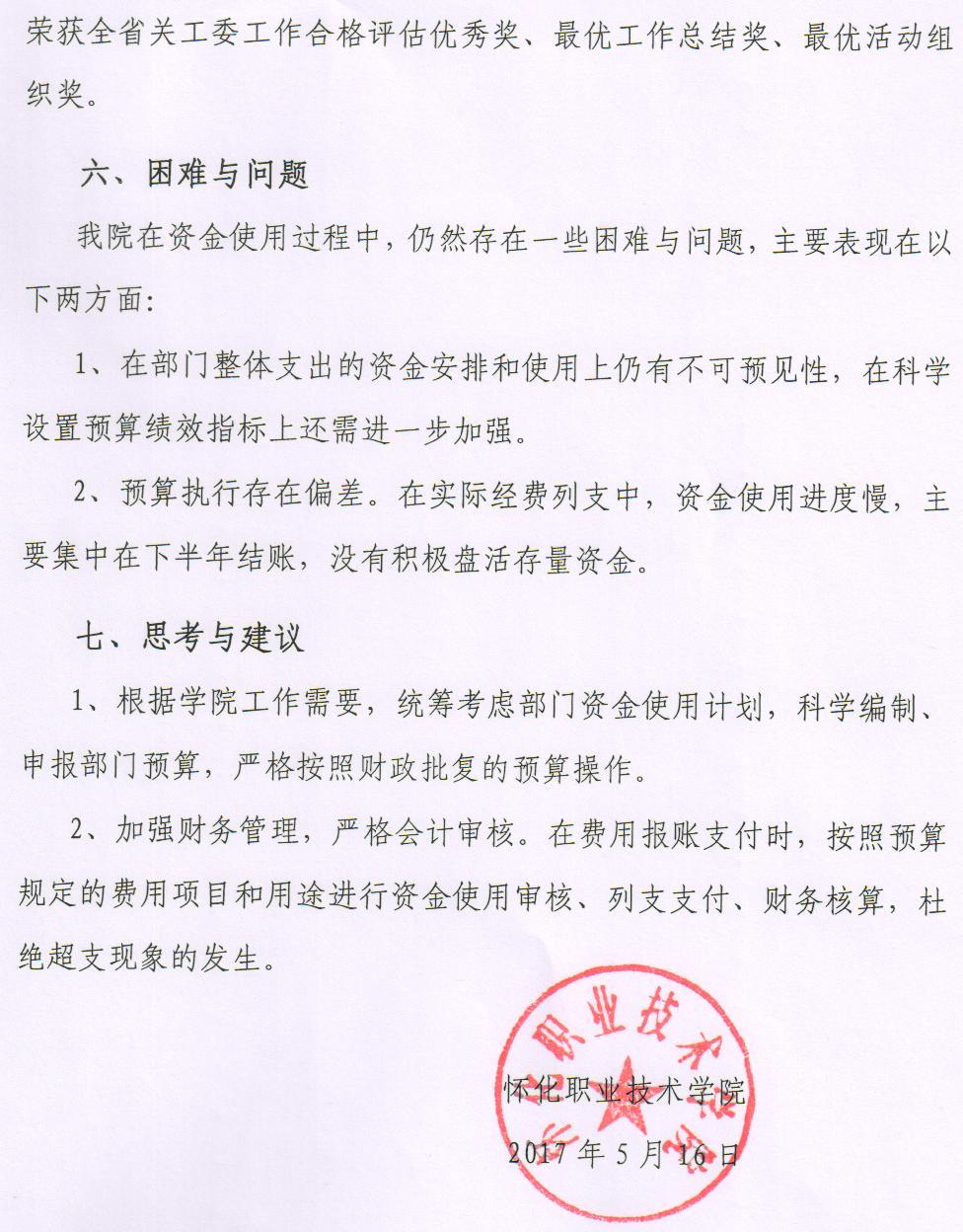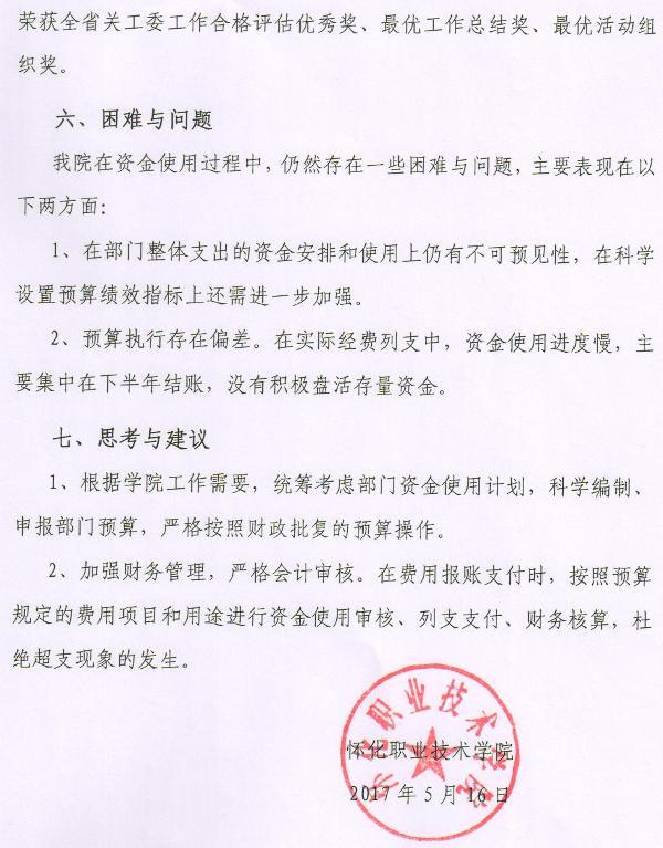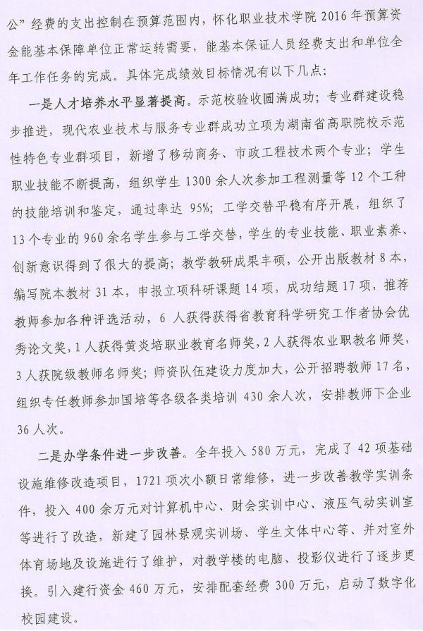 怀化职业技术学院院2016年部门整体支出绩效评价报告