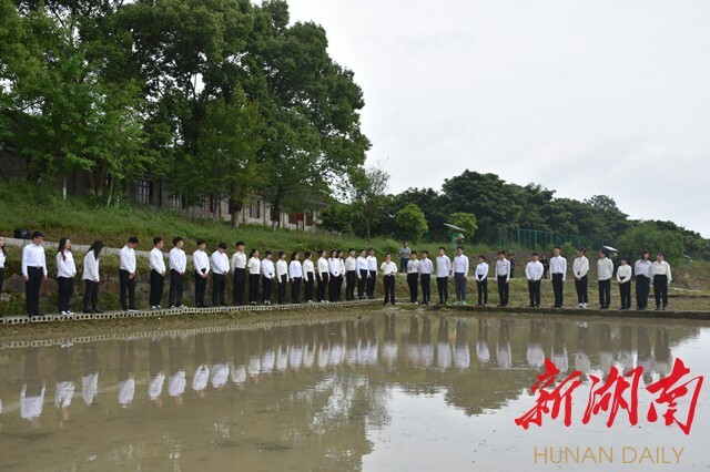 “袁老师在这块田里发现了一株天然杂交稻,这里是袁老师科研团队杂交水稻梦开始的地方。”试验田边,胡佳武向学生们讲述袁隆平及其科研团队在杂交水稻研究领域挥洒汗水、辛勤付出的故事。
