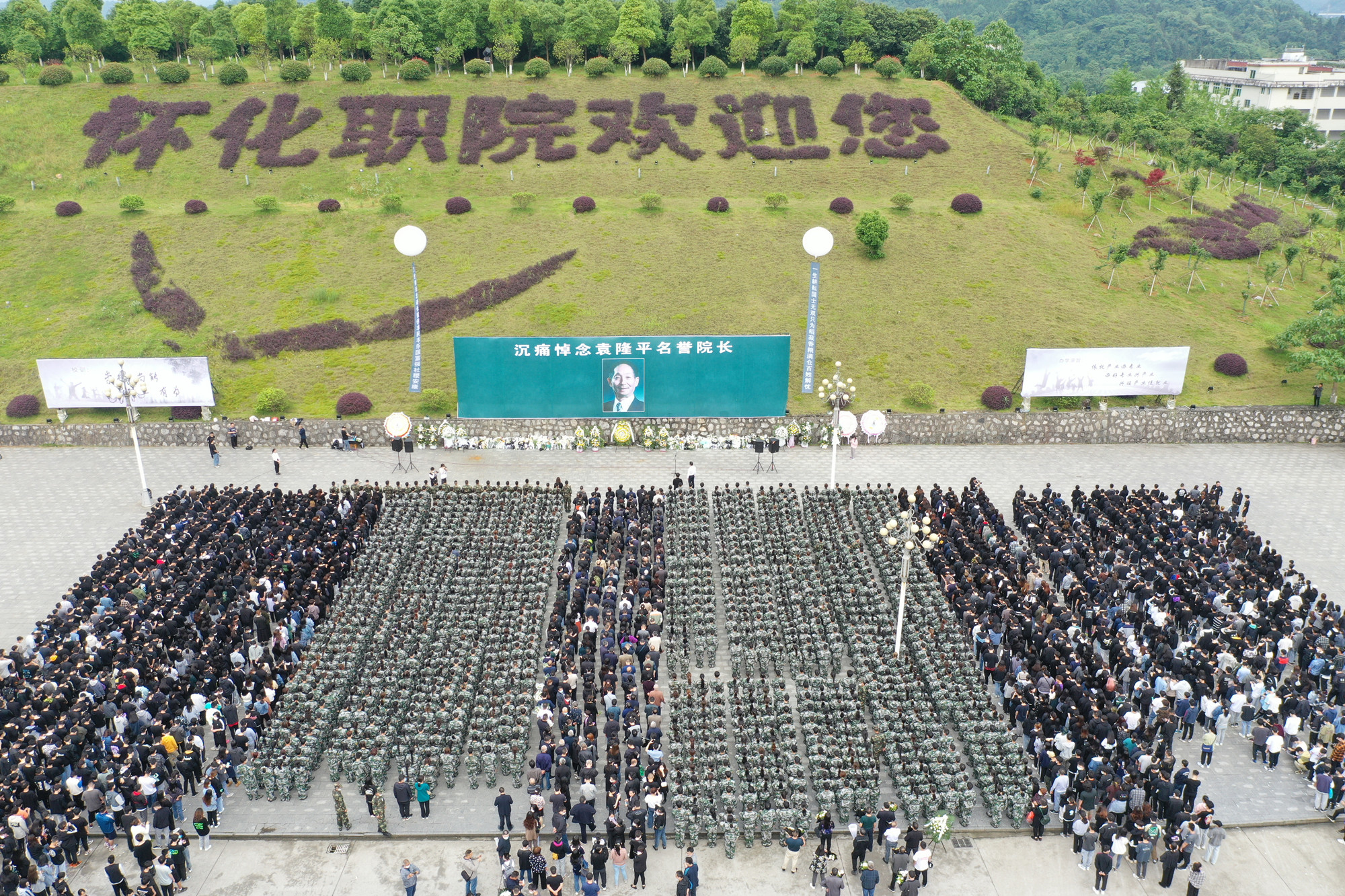 5月24日上午10时,我院在校园广场举行悼念活动,追思名誉院长袁隆平。全体在校院级领导、离退休老同志及全体师生共同参加活动。安江农校纪念园设分会场,同时举行悼念活动。学院党委书记胡佳武、院长王聪田在长沙明阳山殡仪馆参加袁老师遗体送别仪式。