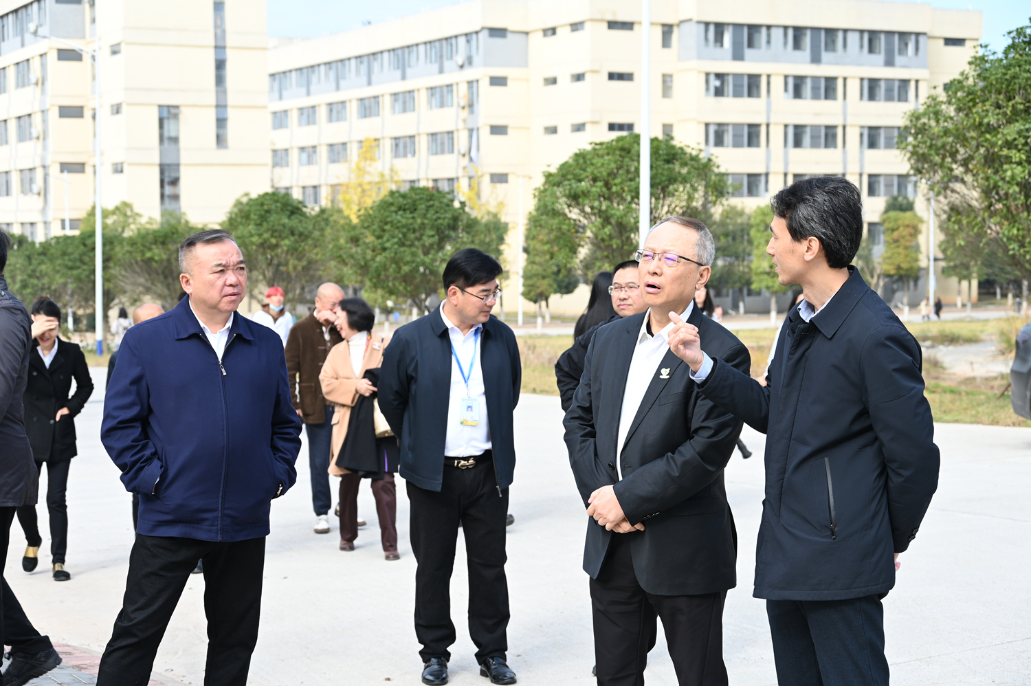 11月19日,北京微爱公益基金会执行理事长王政、全国红军小学建设工程理事会理事、弼时公益基金会筹委会主任武晓明,浙商联盟集团董事长鲁献荣、上海雍创投资董事武凌福等一行来校参观调研。市委宣传部副部长、市文明办主任向孝辉、怀化市民政局党组成员、副局长李勇参加,校党委书记胡扬帆,党委副书记、校长刘学文陪同。校领导张云龙、廖冬云、刘鑫、李亚玲参加。