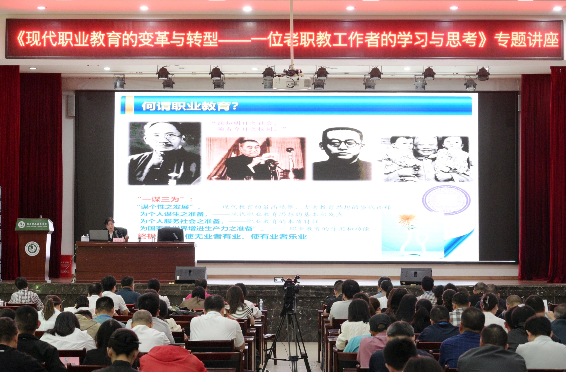 6月6日,学校在大会议组织开展教职工理论学习,中华职业教育社研究部原部长、二级巡视员刘志芳受邀开讲。党委副书记张云龙主持。在家校领导,相关单位及各二级学院(部)全体人员参加。
