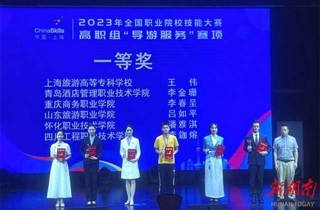 (该校学生荣获2023年全国职业院校技能大赛高职组“导游服务”赛项一等奖。)