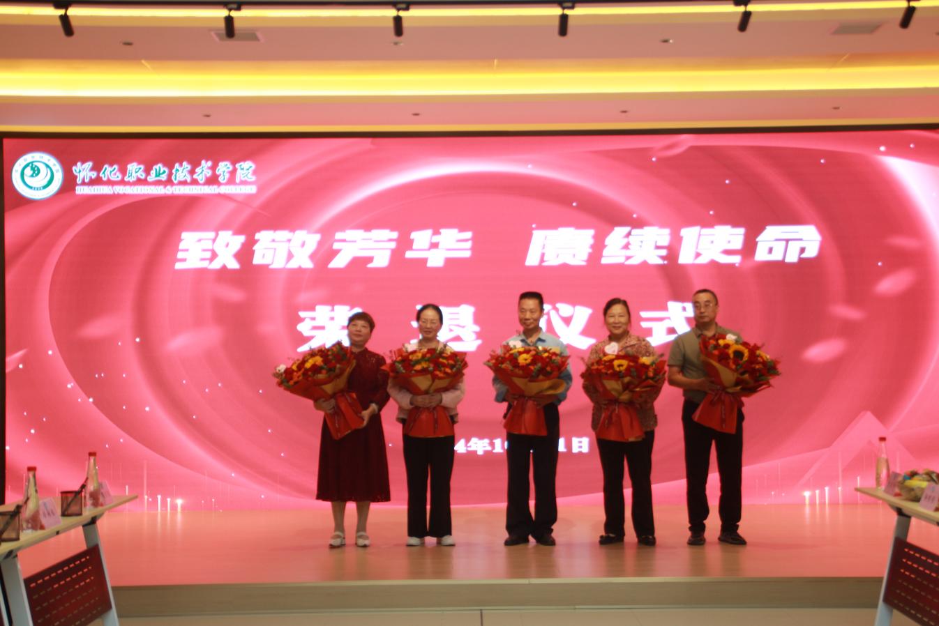 退休老同志们实地查看了农学园艺学院、人社驿站、金种子书屋、新学生宿舍、新食堂等学校的新变化新发展。共同观看了学校近年来发展取得的成果宣传片,一起为刘新梅、高元华、张应早、蒋明姣、杨彬等5位退休教职工举行了荣退仪式,青年教师代表向他们献花致敬。刘学文从专业学科建设、师资队伍建设、校园文化建设、人才培养质量等方面介绍了学校情况。