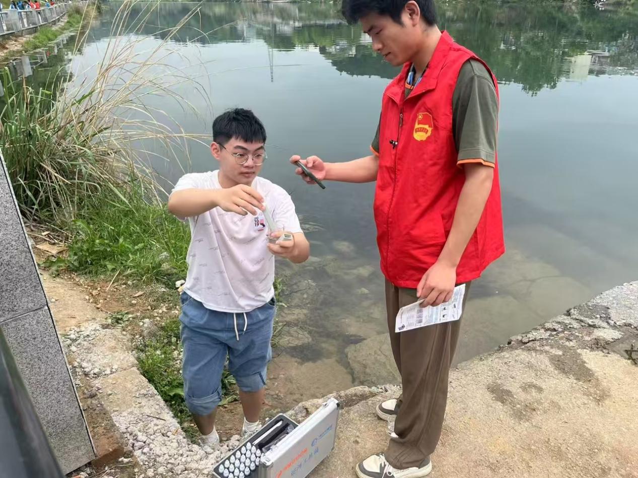 学校河小青志愿服务团队联合河流守望者协会河水水质监测行动,在舞水河畔开展水质检测和净滩行动。志愿者利用“巡河宝”检测工具试剂开展水质检测,同时对河流沿岸的垃圾和杂物进行清理。