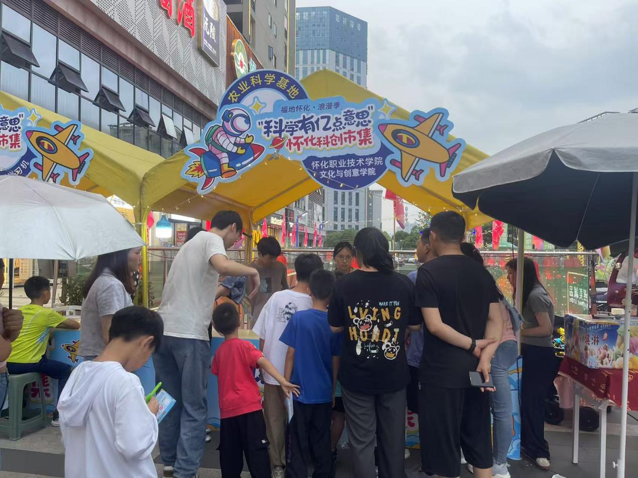 近日,怀化市首届“科学有亿点意思”科创市集活动在红星街道武陵社区大美时光里广场火热举行。文化与创意学院创新运用VR虚拟现实技术,生动呈现水稻培育全周期,打造沉浸式科普体验,成为现场人气焦点。