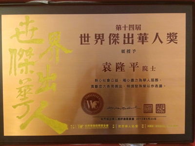 据悉,“世界杰出华人奖”创立于2003年,旨在表彰全球华人对各地华人社会及对国家的贡献和影响,团结和鼓励更多华人热爱祖(籍)国,促进中国与世界各国人民的和谐发展与进步。