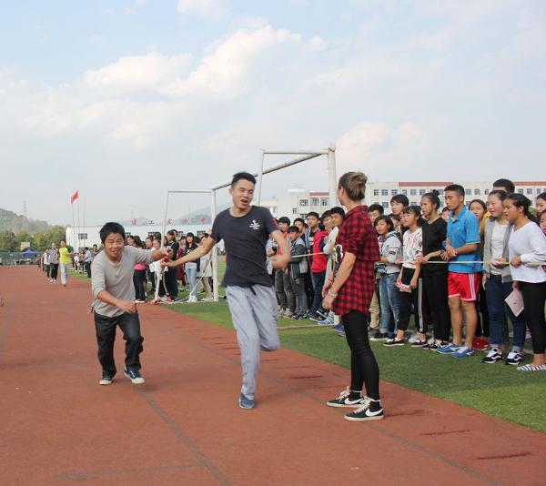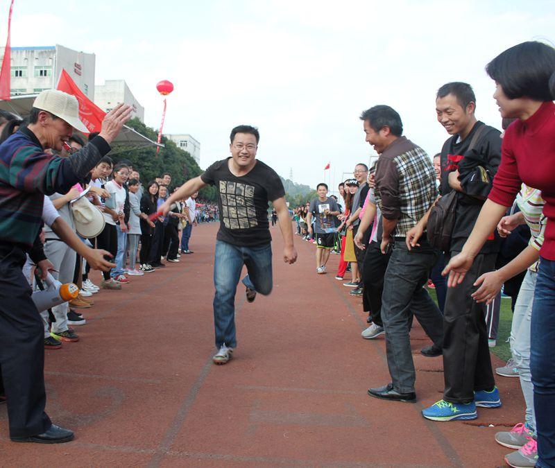 下午3点,学生比赛项目全部结束,教职工10×200米预决赛开始了。田径场周围围满了观看比赛的同学,每个系部的学生都在为自己的老师摇旗鼓劲,现场气氛十分热烈。