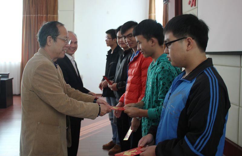 最后,张副院长和刘经理给该班5名优秀学生颁发了奖学金。