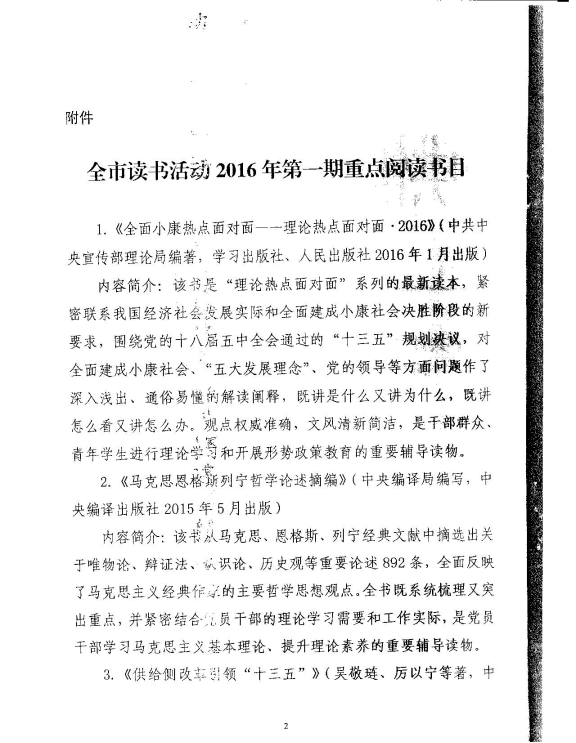 附:《中共怀化市委宣传不关于推荐全市读书活动2016年第一期重点阅读书目的通知》(怀宣【2016】5号)