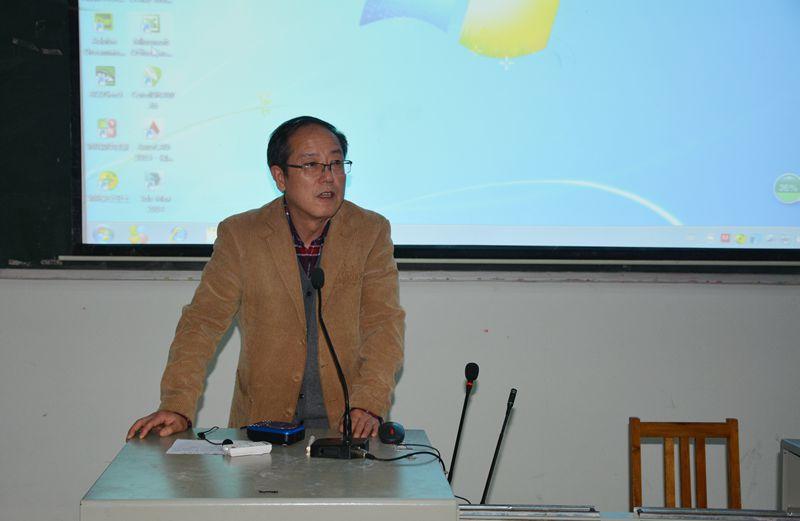 讲座伊始李玉华教授以《说课技巧与教学技能培养》为题目从教学技能的内涵、教学技能的种类、什么是说课、为什么要说课、如何说好课这五个方面做了深入剖析,并讲到说课应遵循的基本原则,即“脑中有理论、眼中有学生、胸中有材料、眼中有特色”。