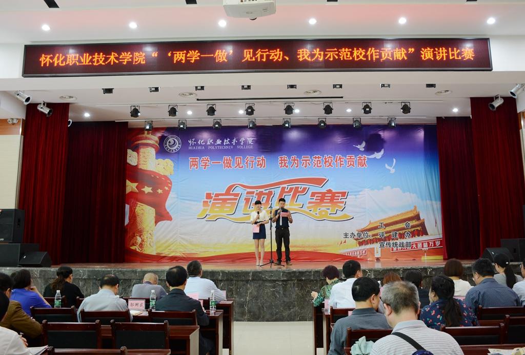 为迎接省级示范校验收,推进“两学一做”活动深入开展,积极营造一个良好的学习氛围,增强学院凝聚力,我院于6月3日下午在大会议室举行了教职工“‘两学一做’见行动,我为示范校作贡献”演讲比赛,活动由学院工会、宣传部、评建办联合主办,党委书记胡佳武、院长王聪田等院领导出席了本次活动,全体教职员工参与见证了比赛的全过程,张珊老师和毛桢老师担任本次比赛的主持。