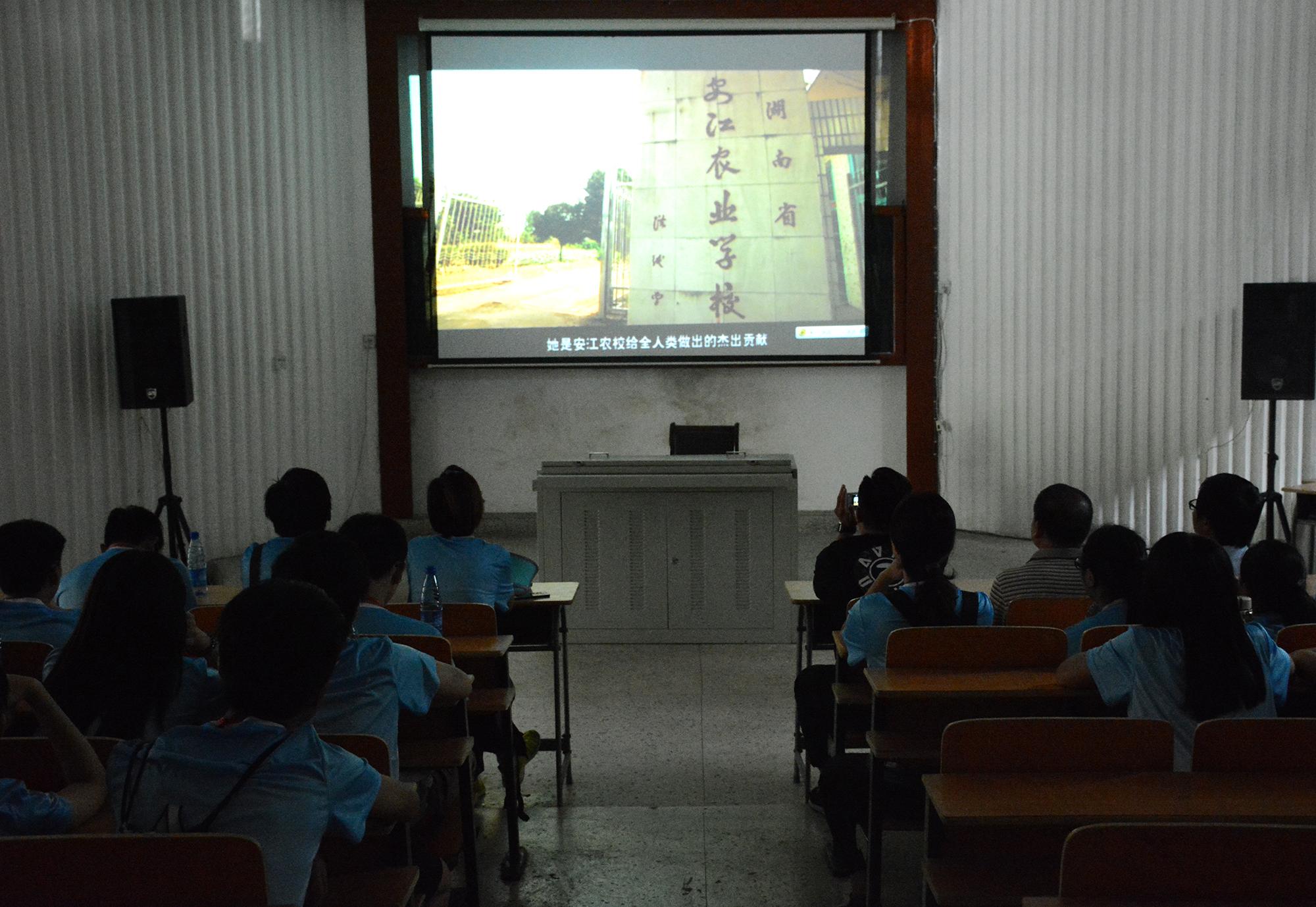 交流活动分为参观、学习、体验、座谈和授牌五个环节。由讲解员邓玉琼带领学生参观安江农校纪念园、杂交水稻展览馆,大家在阶梯教室一同观看安江农校纪念园宣传片。
