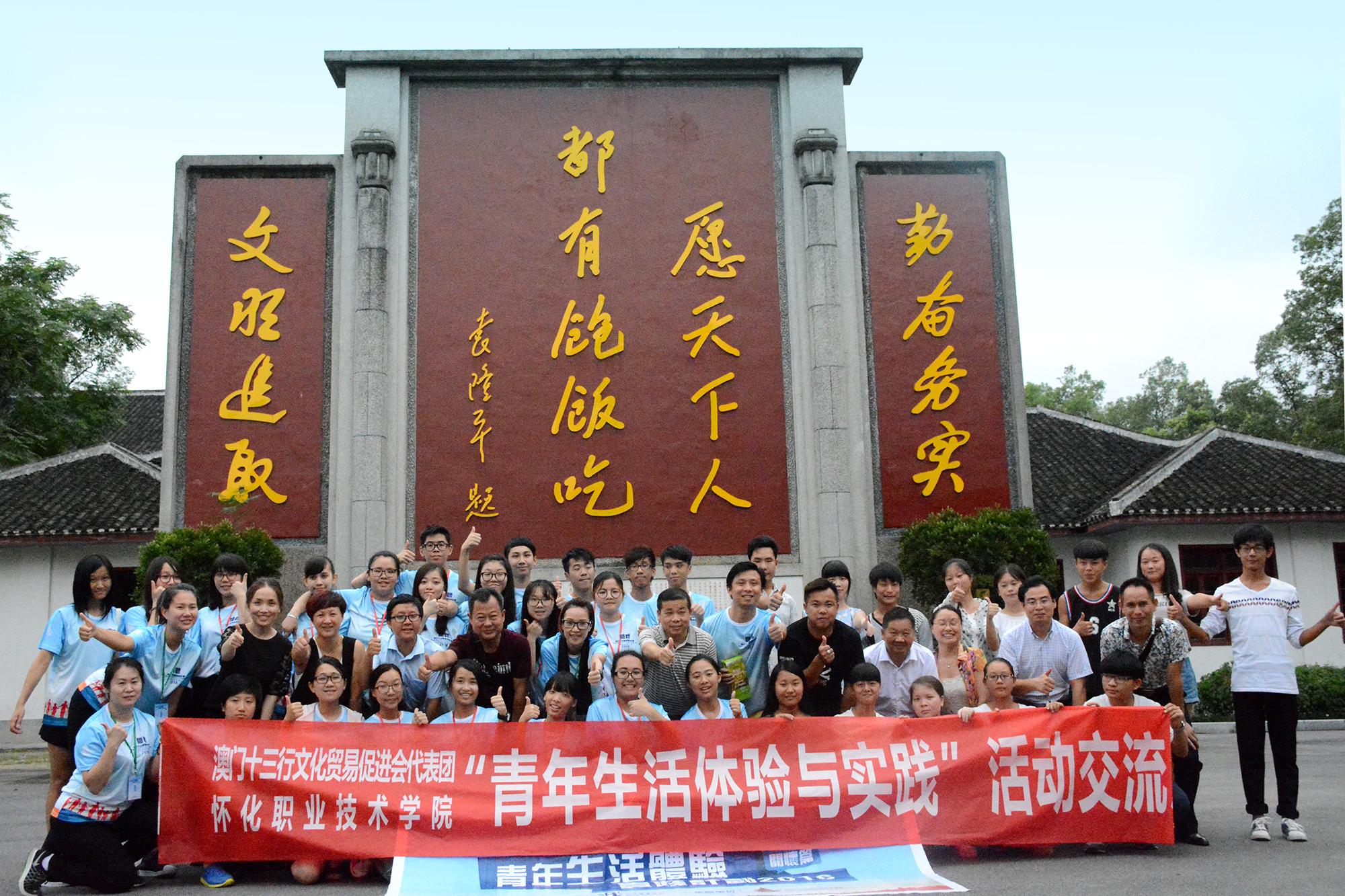 为宣传杂交水稻科研历史与隆平精神,促进两地经济社会与学术文化交流,8月4日,在安江农校纪念园举行怀化职业技术学院与澳门“青年生活体验与实践”主题交流活动暨授牌仪式。我院党委副书记邬国盛、副院长胡龙湘等一行12人前往安江农校纪念园欢迎澳门朋友的到来,澳门十三行文化贸易促进会20多名青年参与了此次活动。