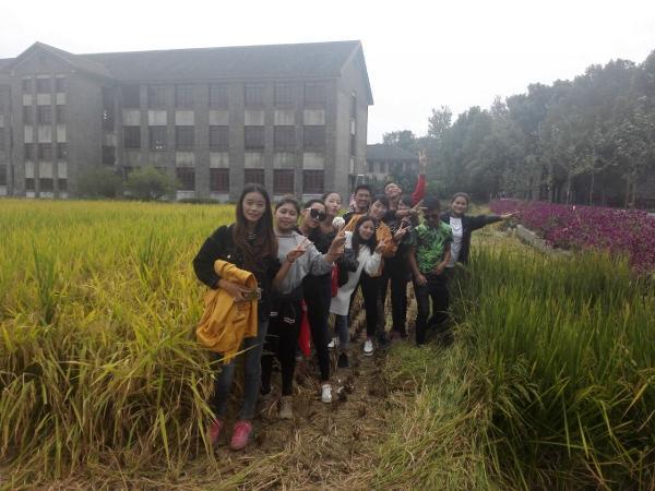 曾经想象过无数遍的场景,却终于要揭开庐山真面目了。学生们怀着无比敬畏和兴奋的心情踏上了此次旅程,上午九点出发,车上胡辉书记给学生们大致讲述了安江校区的发展历史。一下车,学生们简直被这里的环境给惊呆了,有安静的校园,干净的林荫大道,古色古香的红房子,一大片金黄色以及收割过的水稻地儿;千年古樟依然威严地伫立在鱼池旁,看着鱼儿们欢快地畅游;橘子正穿着黄色新装在为我们得到来,热烈鼓掌。