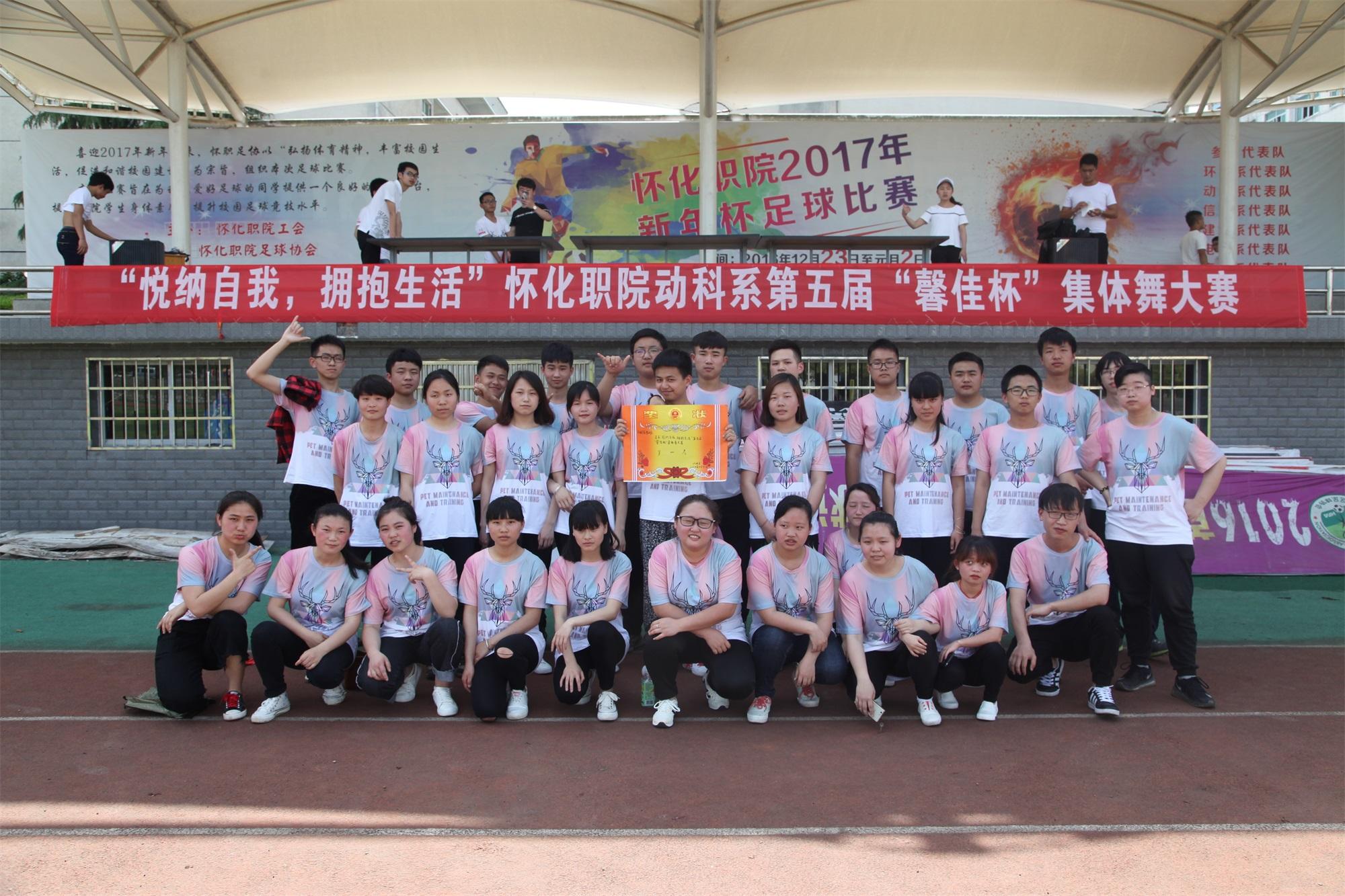 动科系老师们带来的《向快乐出发》为学生们抛砖引玉,系部15、16级共8个班级参与了此次集体舞大赛。比赛按抽签顺序进行表演,而评委们则依据其表演的整齐度和难易度并结合参赛人数打分,通过去掉一个最高分和一个最低分的评分方式获得最后得分。本次比赛结果公平、公正、公开,最终16级宠物班的《功夫瑜伽》技压群雄、拔得头筹,获得第一名; 16级畜牧二班《压力大》和15级牧工班《咋了爸爸》获得第二名;15级畜牧一班的《最炫民族风》和15级宠物班《快乐崇拜》以及15级畜牧二班《踩踩踩》获得第三名。