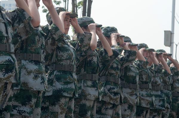 军训期间,商贸管理系340名新生在院系领导的关怀下,在军训教官、跟班辅导员的指导督导下,挥洒着自己的汗水,积极投入到紧张而严格的训练当中。